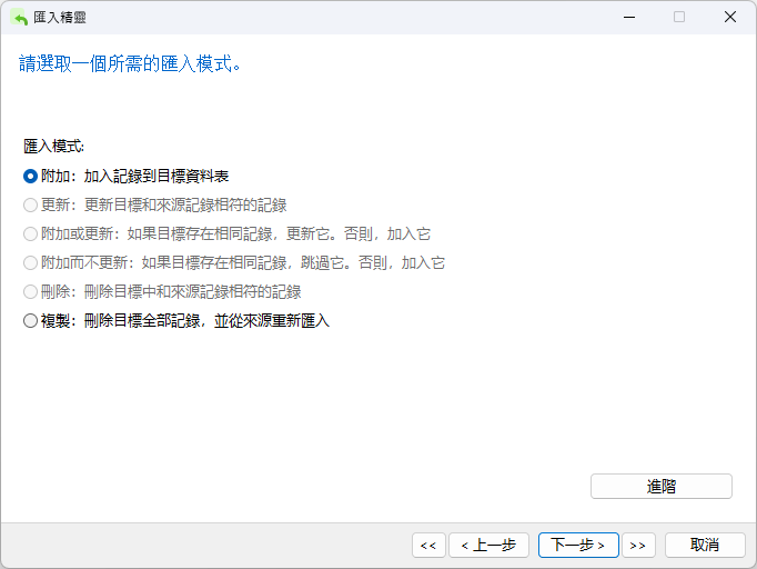 這只能應用在你匯入資料到現有的資料表或集合時。